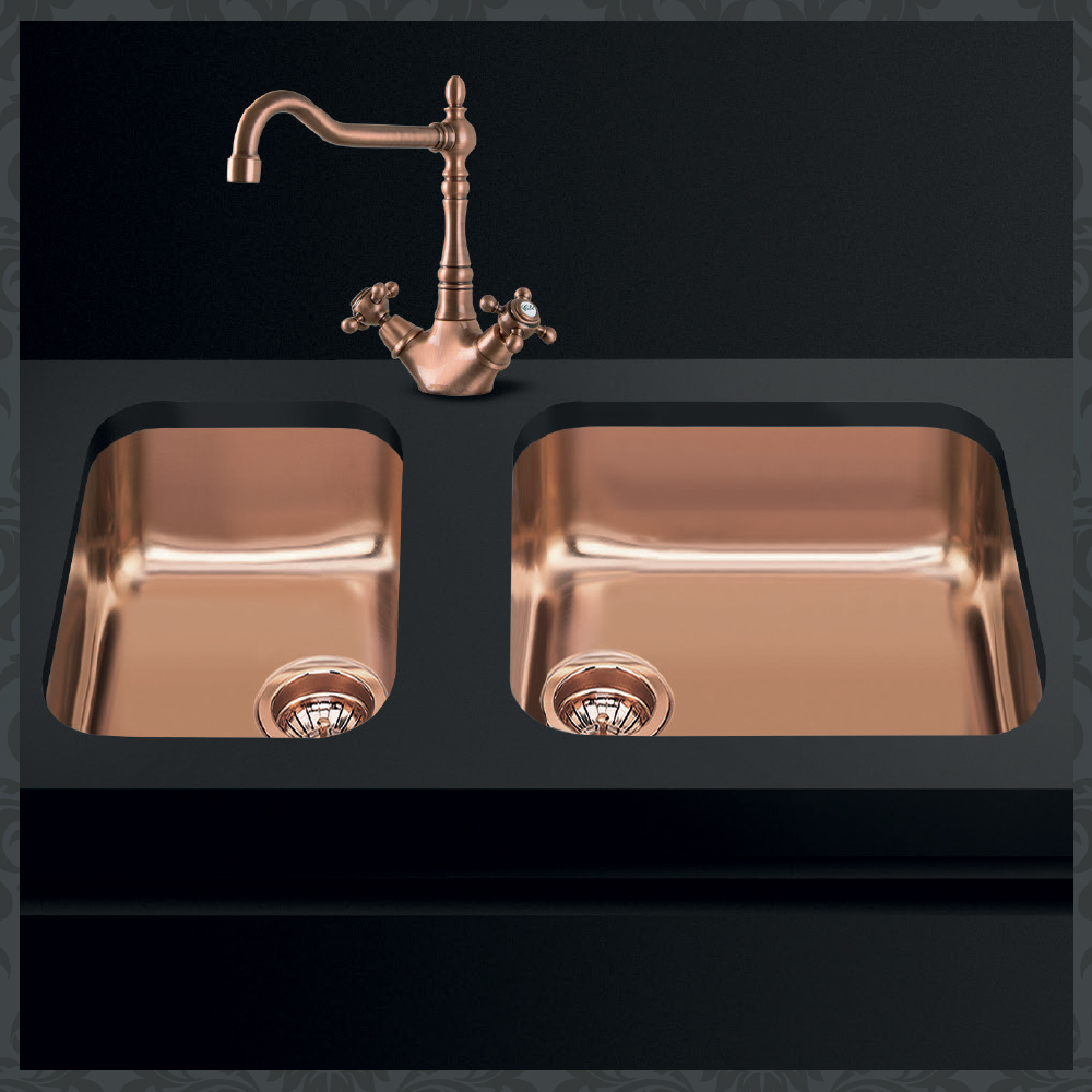 Cubas no acabamento cobre são garantia para fazer uma apresentação diferente em sua cozinha. Combine com painéis de rodapé correspondentes para dar a sua cozinha outra camada de sofisticação e estilo clássico. Esta pia encapsulará perfeitamente o design tradicional com uma borda moderna.